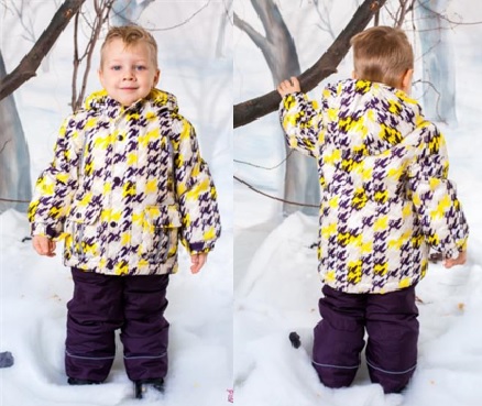 Курточка желтый, белый и темно-фиолетовый. Штанишки темно-фиолетовые. Флисовая подкладка желтая.